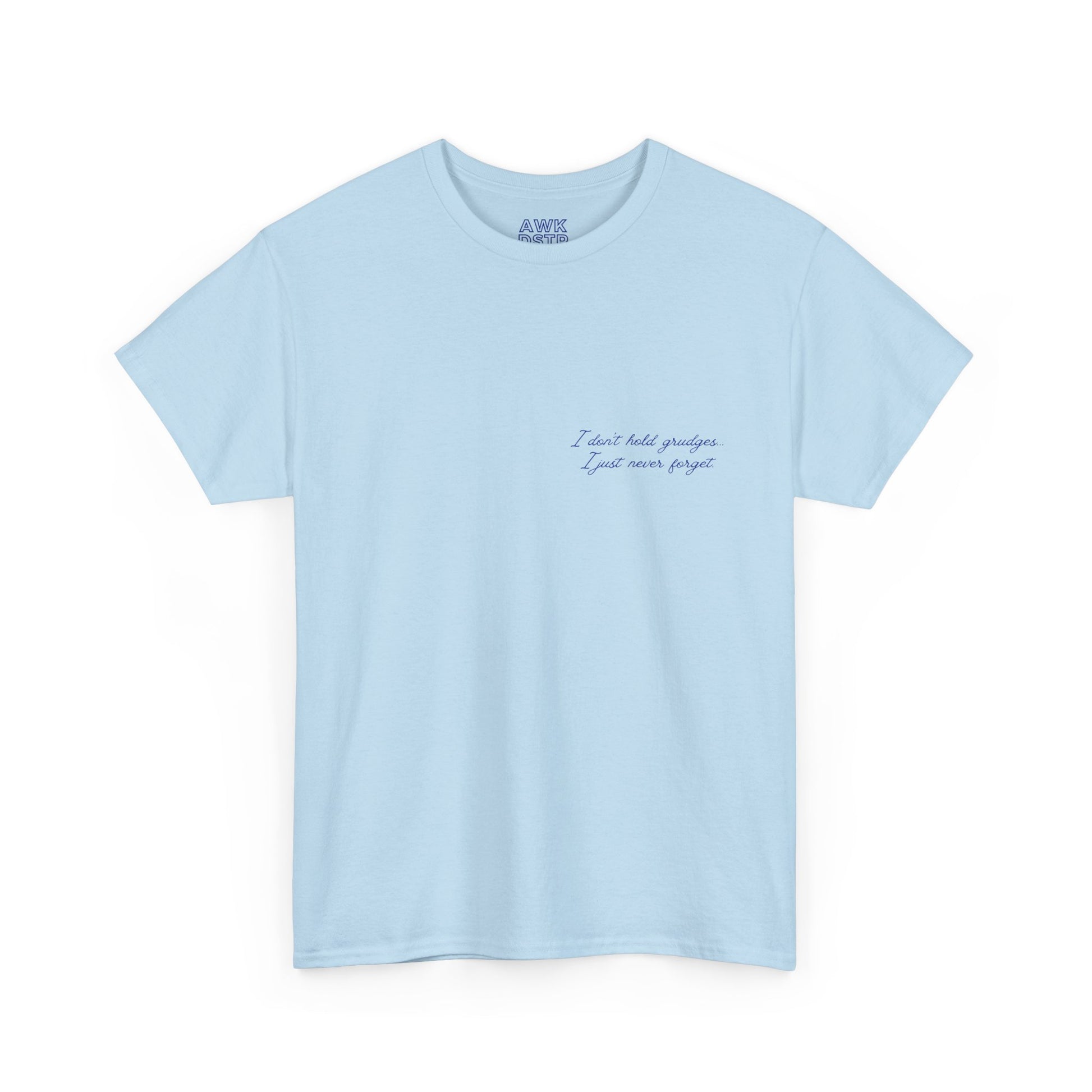 The I DON’T HOLD GRUDGES… t-shirt is built for exactly that — a long memory, a short fuse, and a uniform that says just enough.